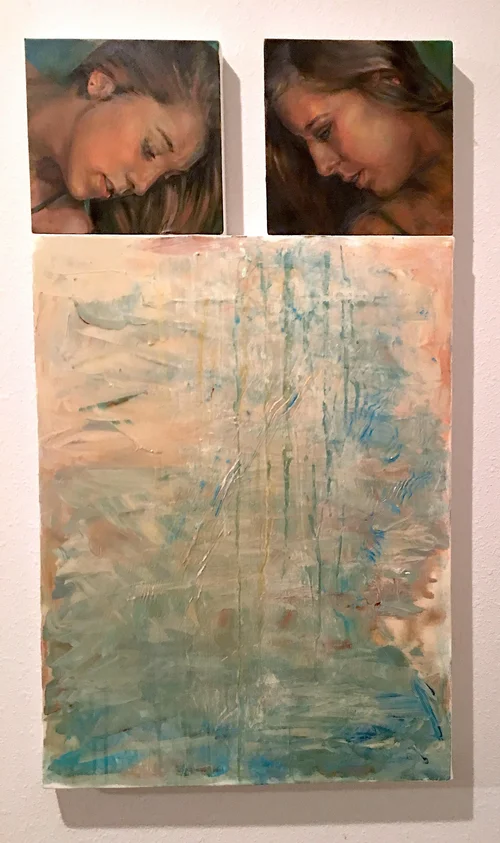 Heads: 4”H, 4”W each. oil on canvas. Price on request. Abstraction: 12”H, 9”W, acrylic on canvas. Sold..